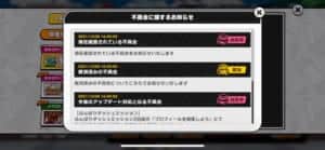 ゲームプレイ画面のお知らせをタップしましょう。次に不具合に関するお知らせをタップしましょう。