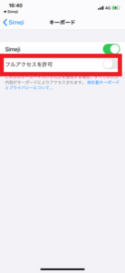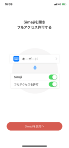 Simejiは「フルアクセスの許可」を行うことにより、全てのキーボードカスタム機能を使えるようになります。