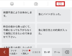 ☺⇒定型文マークをタップすれば、様々な定型文を選べます。