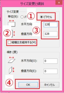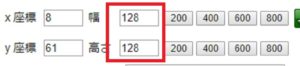 ③:水平・垂直のサイズを変更するどちらも128[px]×128[px]以下