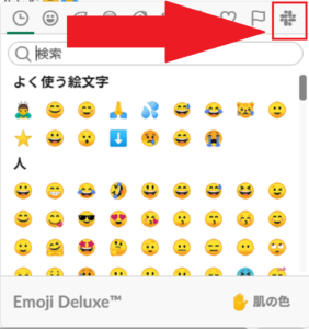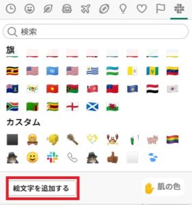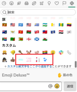 絵文字一覧が表示されるので、一番右にある「slackマーク」をクリックしてください。