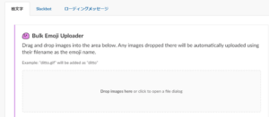 一括で登録したい絵文字をパソコンのファイルから選び、slackの絵文字登録の枠にドラッグします。