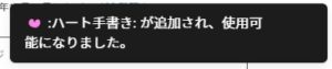 絵文字が追加されると「〇〇が追加され、使用可能になりました。」と表示されます。