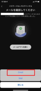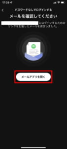 メールアドレス宛にログインボタンが送信されたので、メールアプリを開くをタップします。