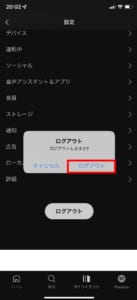 ログアウトしても問題ないか確認が表示されるので、再度ログアウトをタップします。
