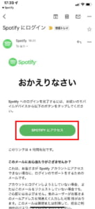 メールアプリ宛にログインボタンが送信されているので、SPOTIFYにアクセスをタップしてください。