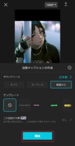 テキストをタップして自動キャプションを押します。