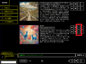 SUNOでは1つの歌詞につき2つの歌が作られます。