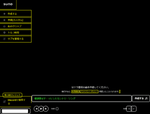 SUNOを開いて下部のバーに、曲にしたいワードを入力します。
