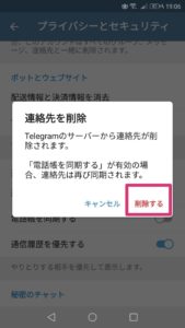 そもそも、リアルな友達などにTelegramをやっていることを知られたくないという場合は電話帳同期するのをやめましょう。