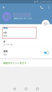 Telegramはお互いの連絡先(電話番号)を知っている、スマホに登録している場合であれば、上の画像のように電話番号が表示されます。