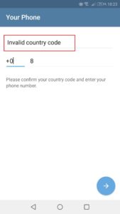 まず、「Start Messaging」をタップした後、「Invalid country code」をタップ。