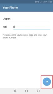 「Japan」を探してタップ後、電話番号を入力して右下の「→」をタップ。