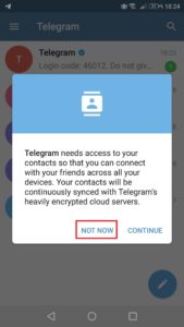 Telegramの登録段階で電話帳同期をせずに登録できるので試してみましょう。