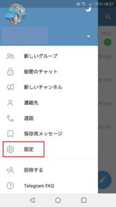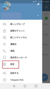 まず、左上の「横棒三本線」をタップ後、メニューが表示されるので「設定」をタップ。