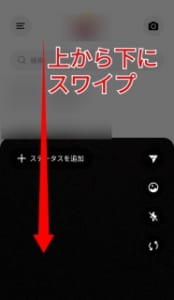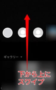 撮影画面は「上から下にスワイプ」するとホーム画面に切り替わります。「下から上にスワイプ」するとスマホ内にある画像や動画を表示させることができます。