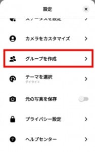 まず、ホーム画面より左上のをタップして、次に表示されるメニューからグループを作成をタップしてください。