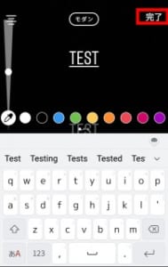 ここからは撮影後に表示されるボタンについて解説していきます。まず一番上のAaをタップすると、撮影した画像や動画にテキストを入れることが可能です。