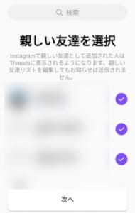 Threadsで追加・外した親しい友達はインスタでも反映されます。