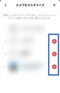 カメラ画面に追加したい親しい友達がいれば+をタップしましょう。また、カメラ画面から消したい親しい友達がいる場合は×をタップしてください。