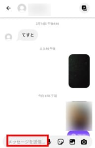 親しい友達のDMをタップすると、DM送信画面が表示されます。