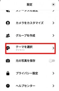 Threadsはアプリのテーマ設定が可能です。ホーム画面よりをタップしてテーマを選択をタップしましょう。