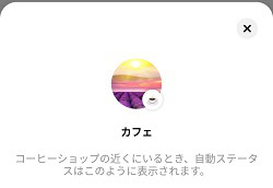 ステータス機能は自分で設定できる他に、位置情報を利用すると、自動的にステータスを選び表示してくれる機能もあります。