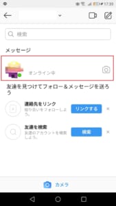 メッセージ入力欄の📷をタップすると、DMを送信する相手に直接、撮影した画像や動画を送ることができます。