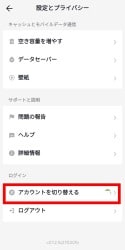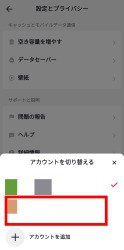 設定メニューを一番下までスクロールして、アカウントを切り替えるをタップします。切り替えたいアカウントをタップすると切り替わります。