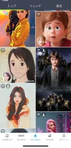 まず、ToonMeを開き、下部のメニューより一番左のボタンをタップします。