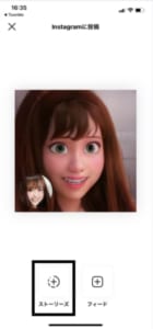 ToonMeでは作成した画像をインスタにシェアすることができます。