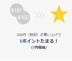 - 200円で1ポイントの場合⇒1000円で5ポイント貯まる