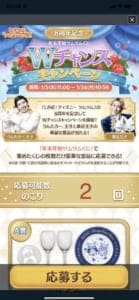 ツムツムの8周年記念Wチャンスキャンペーンでは、応募ボタンをタップすることでキャンペーンに参加することができます。
