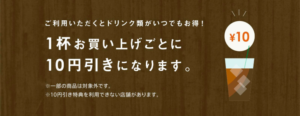 こちらのサービスは後述する「タンブラー・マグカップ割引」との併用が可能なので、最大40円引きになります。