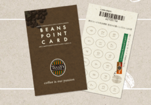 TULLY'Sではコーヒー豆を購入すると、ビーンズポイントカードを貰えます。