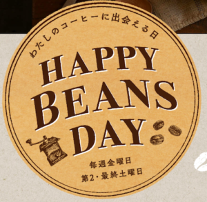 毎週金曜日と第2、最終土曜日は「HAPPY BEANS DAY」とされており、コーヒー豆を購入するときに貰えるビーンズポイントカードのスタンプをお得に貯めることができます。
