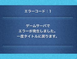 エラーコード:1のメッセージが表示された後は、強制的にタイトル画面に戻されてしまいます。
