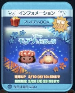 ツムツムの航海者モアナは新ツムのため、2月の頭まで確率アップ期間が設定されています。