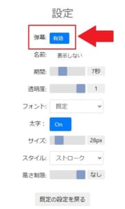 右上に表示されているアイコンからチャット弾幕をクリックすると、詳細を設定できます。