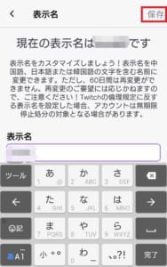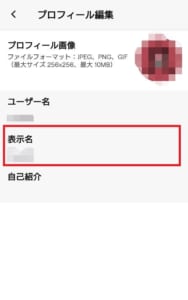 表示名の赤枠部分をタップし、変更したい表示名を入力すればOKです。