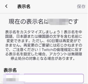 Twitchのユーザー名と表示名は60日に1回しか変更することができません。