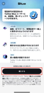 Twitter Blueの概要などや支払い金額が表示されるので、内容を確認してから購入するをタップします。