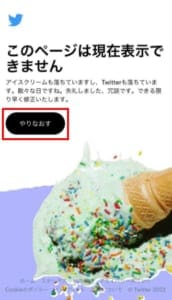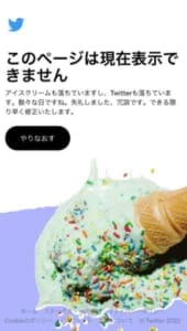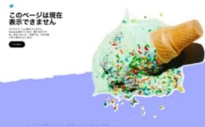 Twitterの「このページは現在表示できません」のエラーでは、アイスクリームが落ちたジョークのエラー画像が表示されています。