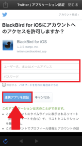 アプリの紹介ページを進めていくとTwitterアカウント認証が表示されました。