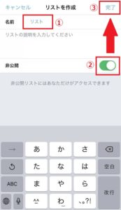 次に非公開のスイッチをオンにして最後に完了をタップします。