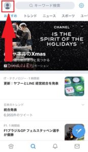 次にリストに追加したユーザーのタイムラインを見る方法は、Twitterアプリの左上の【自分のアイコン】をタップします。