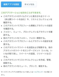 Twitterで相互ブロック確認を行う際に注意した方がいいサイトとしては、アカウント連携時に相互ブロック確認と関係のない機能との連携の記載があるケースです。