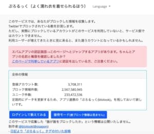 Twitterアカウントの相互ブロックの件数を確認するサイトで、ぶろるっく(blolook)の類似サイトは乗っ取りの原因になる可能性があります。