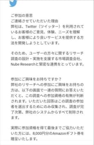Twitterから調査研究に参加する、利用状況調査のメールは詐欺?