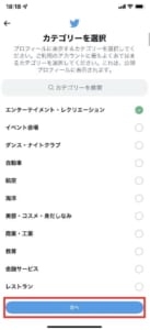 カテゴリーを選択することができるので、ここで自分が設定したいカテゴリーの横にある○をタップしてください。